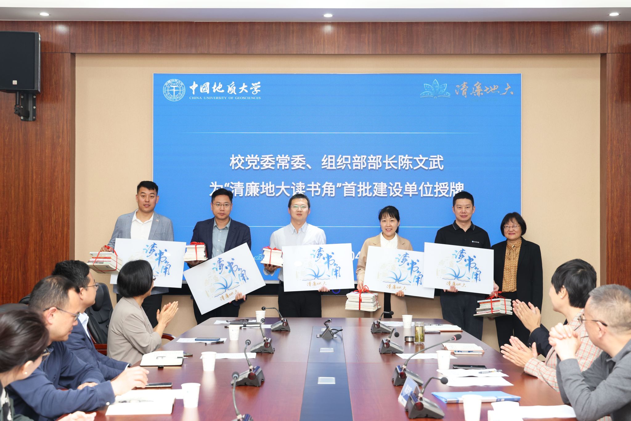 陈文武为清廉地大读书角首批建设单位授牌、赠书。