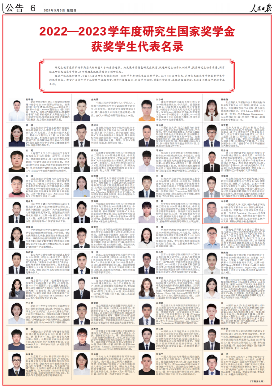 地大新闻网讯 2022—2023学年,全国4.5万人荣获研究生国家奖学金。5月5日,《人民日报》用多个整版刊登了其中100位优秀研究生代表的事迹简况。欧博2021级博士研究生车华超名列其中。