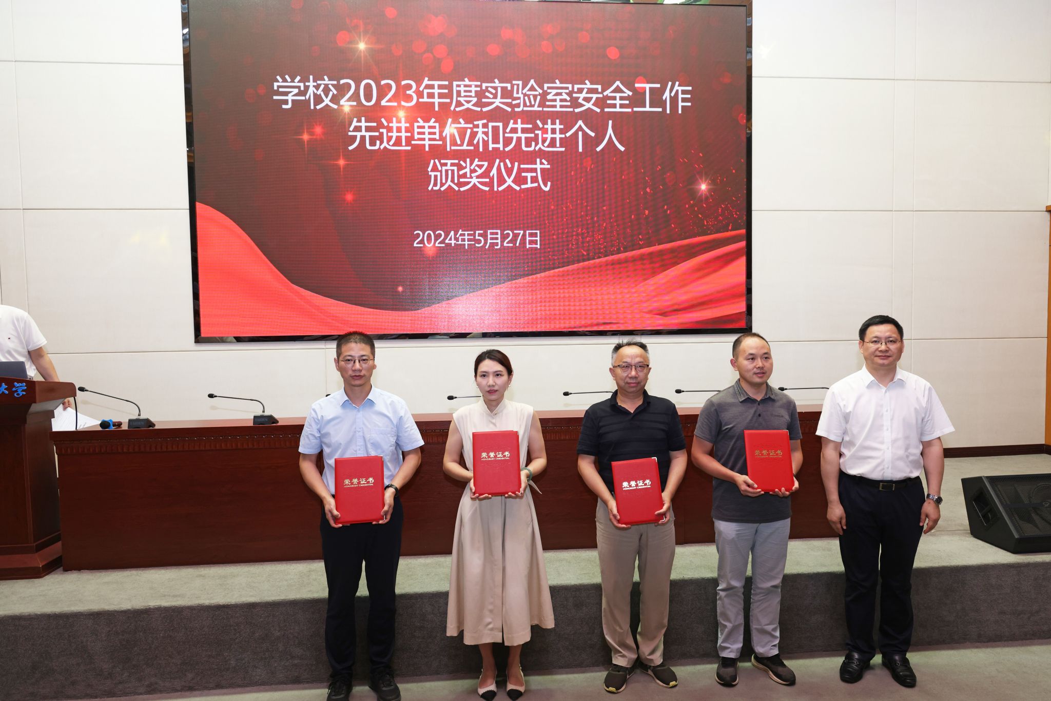 王耀峰宣读《关于表彰学校2023年度实验室安全工作先进单位和先进个人的决定》。
