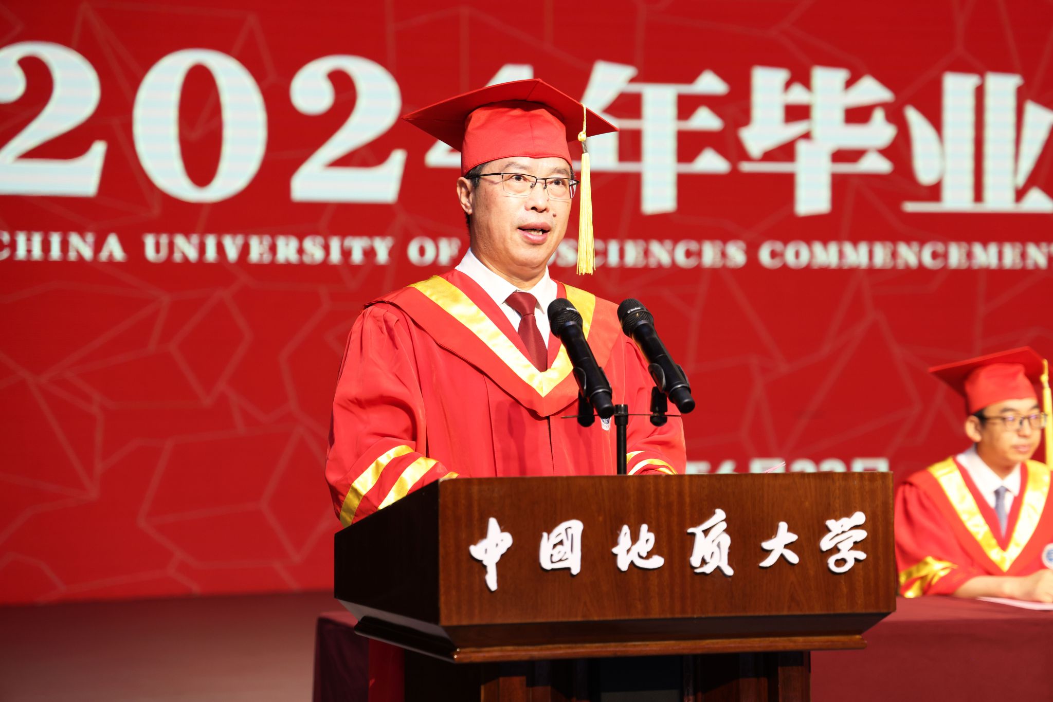 校长李建威以《挑战与自信》为题,深情寄语2024届毕业生。他说,考验之中强筋骨,风雨之后见彩虹。四年前,突如其来的新冠肺炎疫情,给同学们的求学之路带来了前所未有的困难与挑战,但对于“胸中有丘壑、眼里存山河”的地大人来说,这些反倒激励大家不断突破自我,学校为大家骄傲、为大家自豪。
