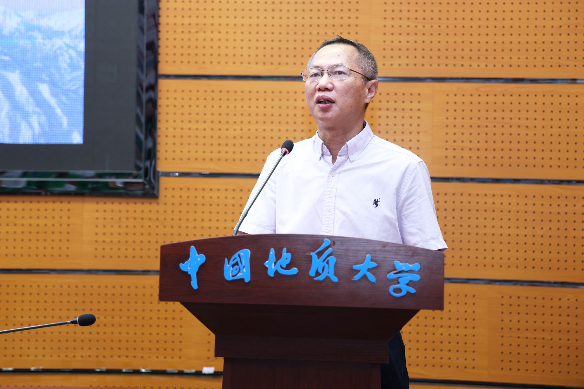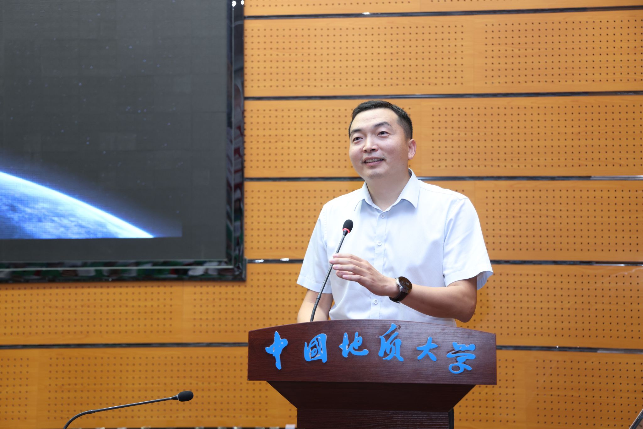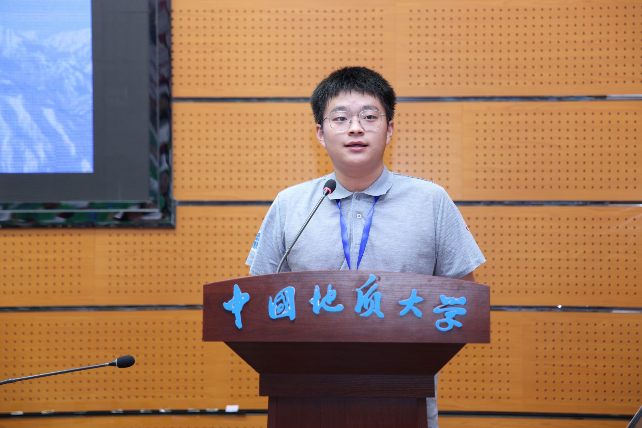 志愿者代表黄啟亮同学发言。他说,30名志愿者牢记“奉献、友爱、互助、进步”的志愿精神,将主动为每一位营员提供全方位的保障和服务,陪伴营员们感受地大精神和科学魅力。