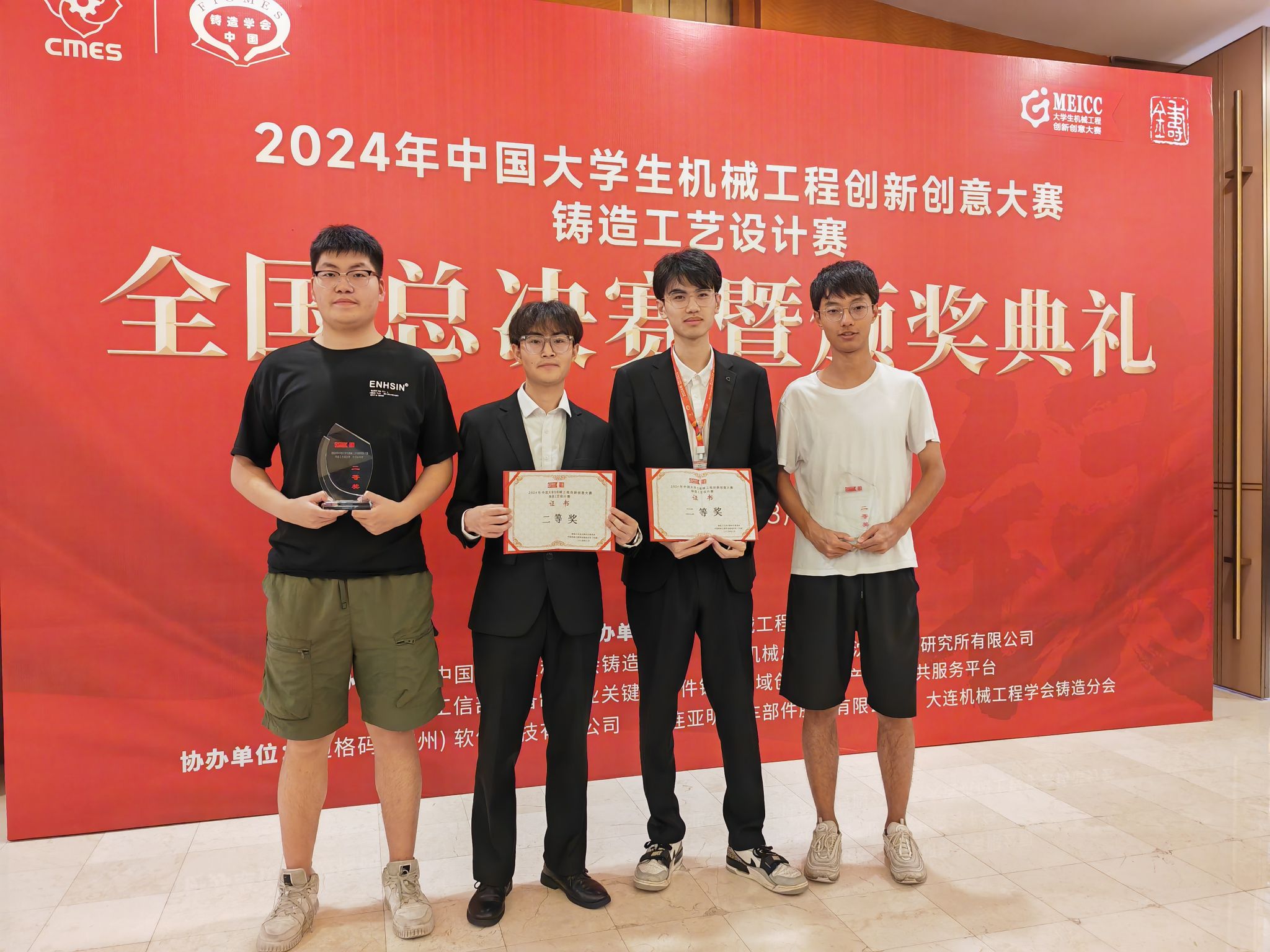全国二等奖获奖学生代表合影(从左至右:邢健博,刘海鹏,殷培琨和王赋煜)