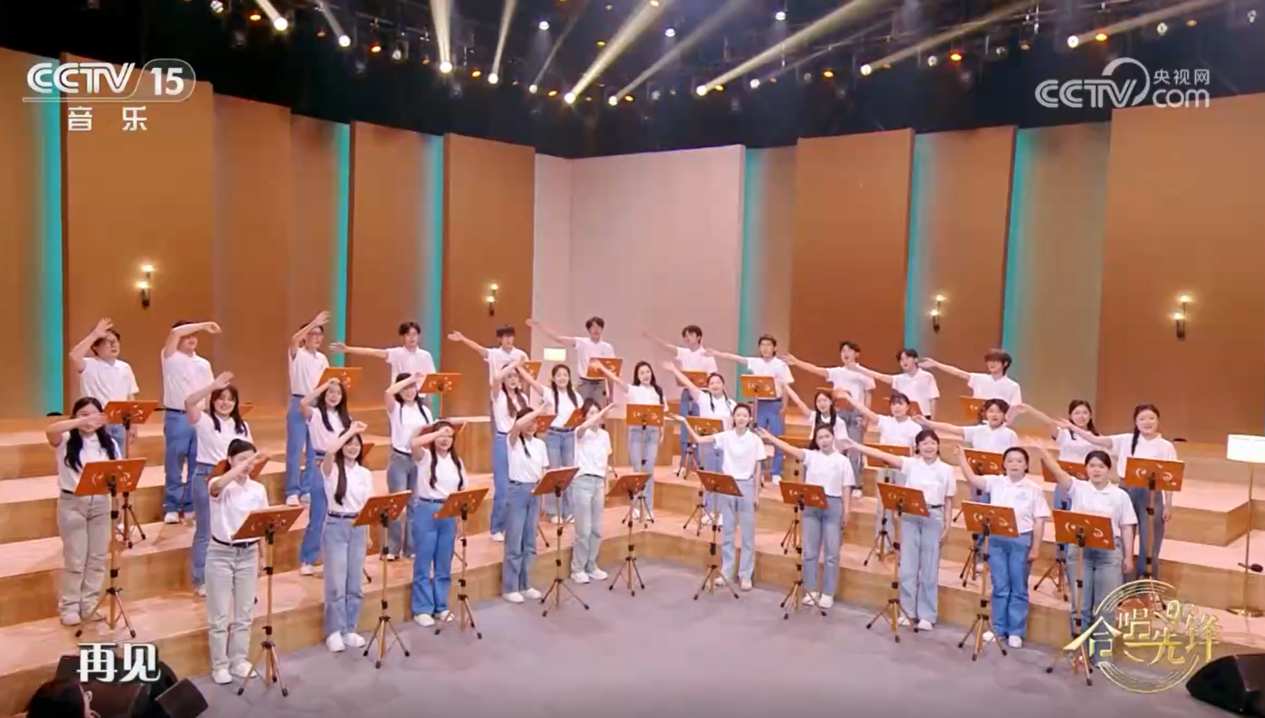 节目中,余磊老师指挥,星空合唱团的同学们齐声高唱《勘探队员之歌》,令在场的观众们心潮澎湃。