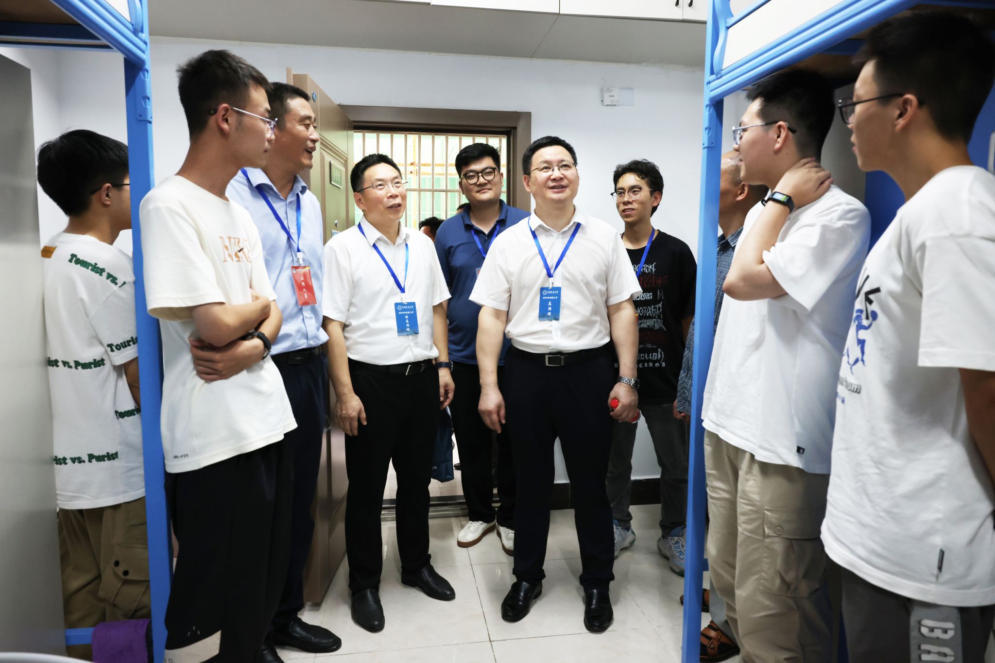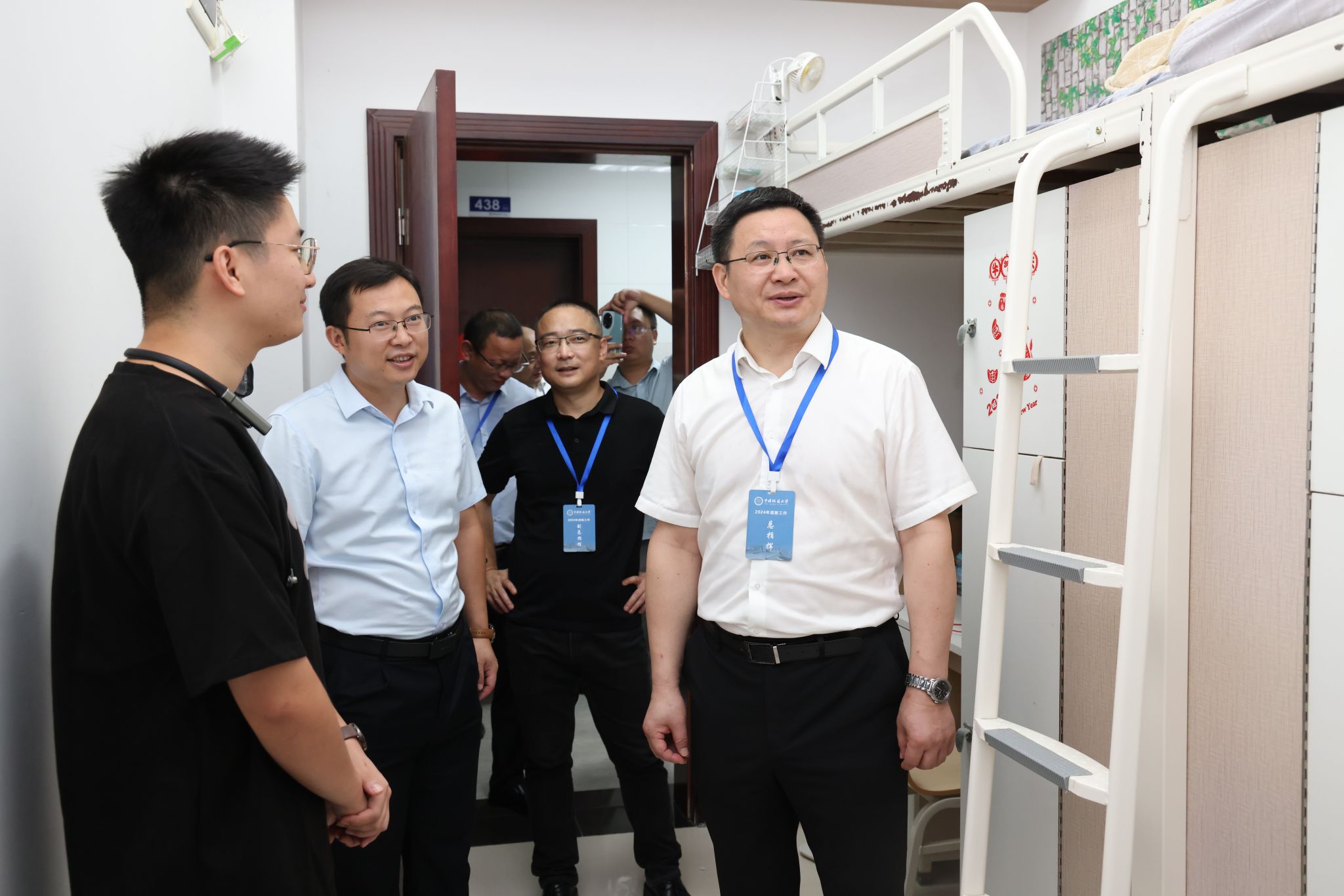 9月2日、9月3日下午,校领导刘杰、王林清、唐忠阳、王甫、王力哲,党委常委、组织部部长陈文武,校长助理蒋少涌,分别到南望山校区、未来城校区迎新点和新生宿舍走访,与新生和家长们亲切交流,了解大家饮食、生活、兴趣爱好以及到校后的感受。他们代表学校欢迎新生们,表示学校将尽最大努力为同学们提供良好的学习生活环境,请家长们放心,希望同学们保持青春朝气,好好珍惜来之不易的学习机会,练就过硬本领,在地大追逐并实现自己的梦想。