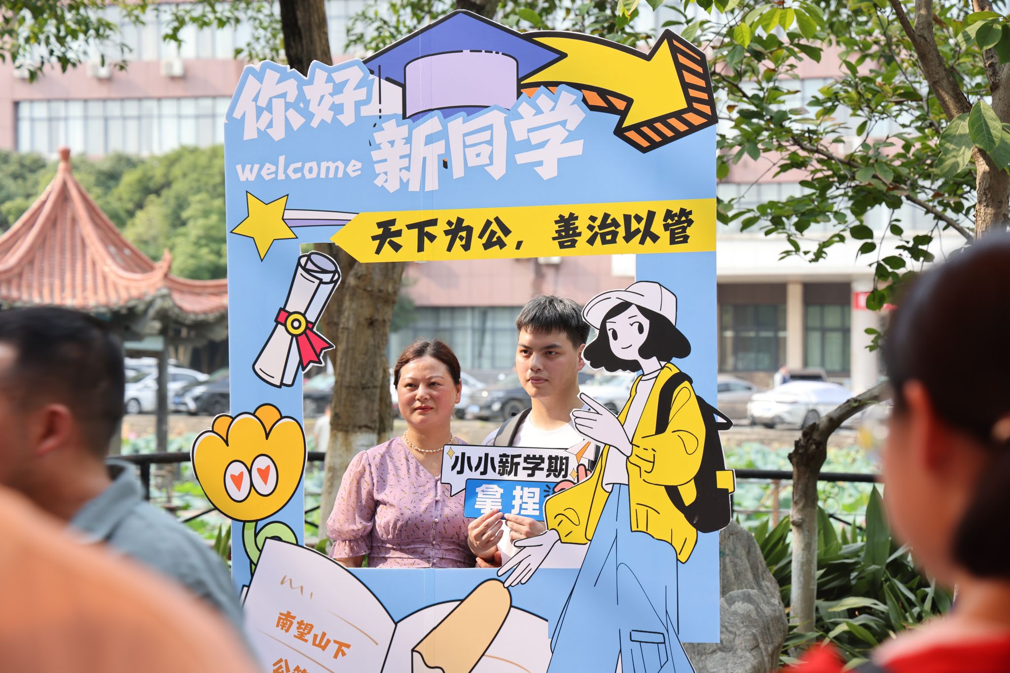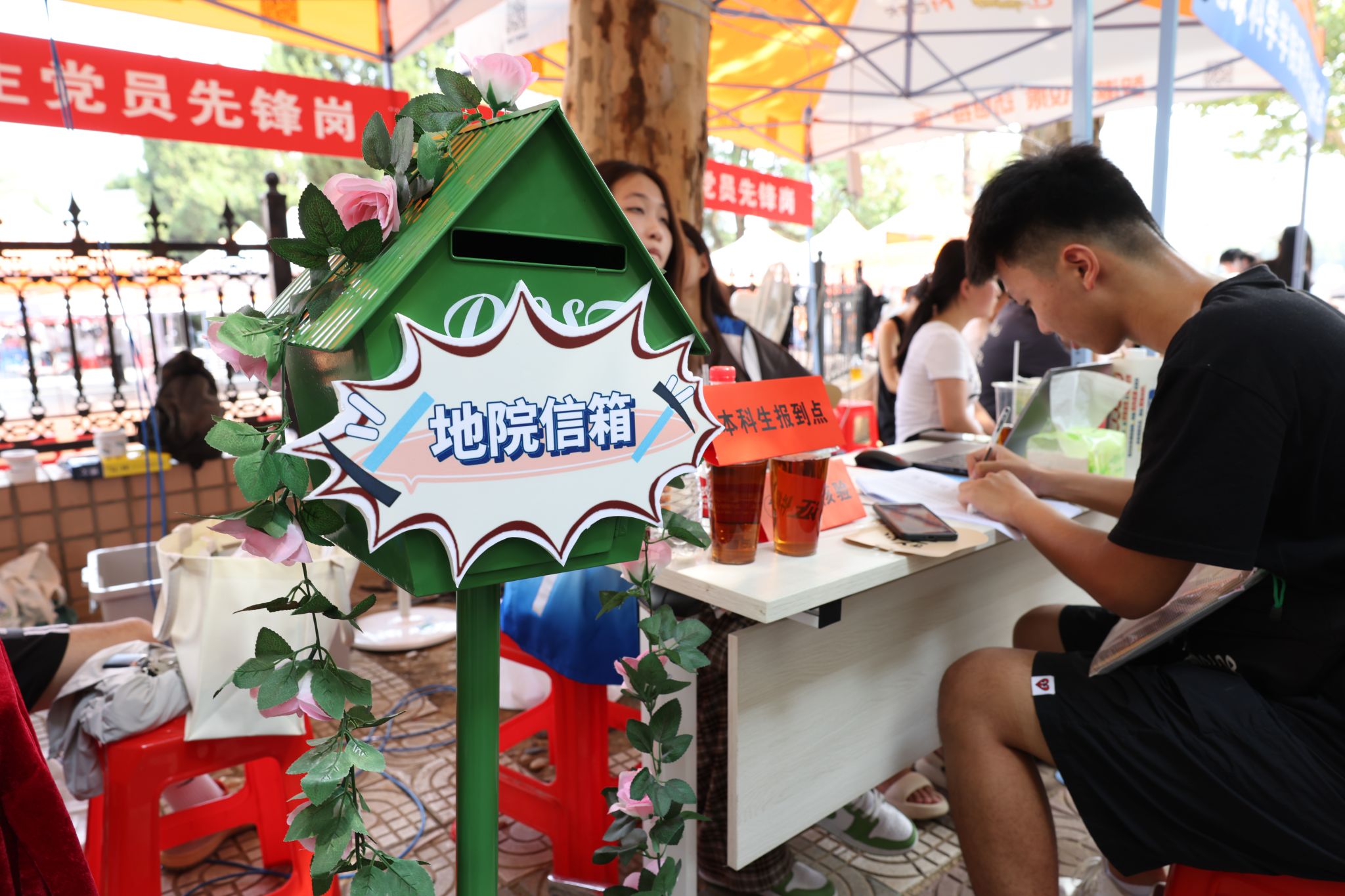 大转盘、签名墙、各式小礼品……虽烈日炎炎,但空气中氤氲着欢乐的气息。微笑、拥抱、定格,在各学院的迎新报到点,大家把美好记忆珍藏。