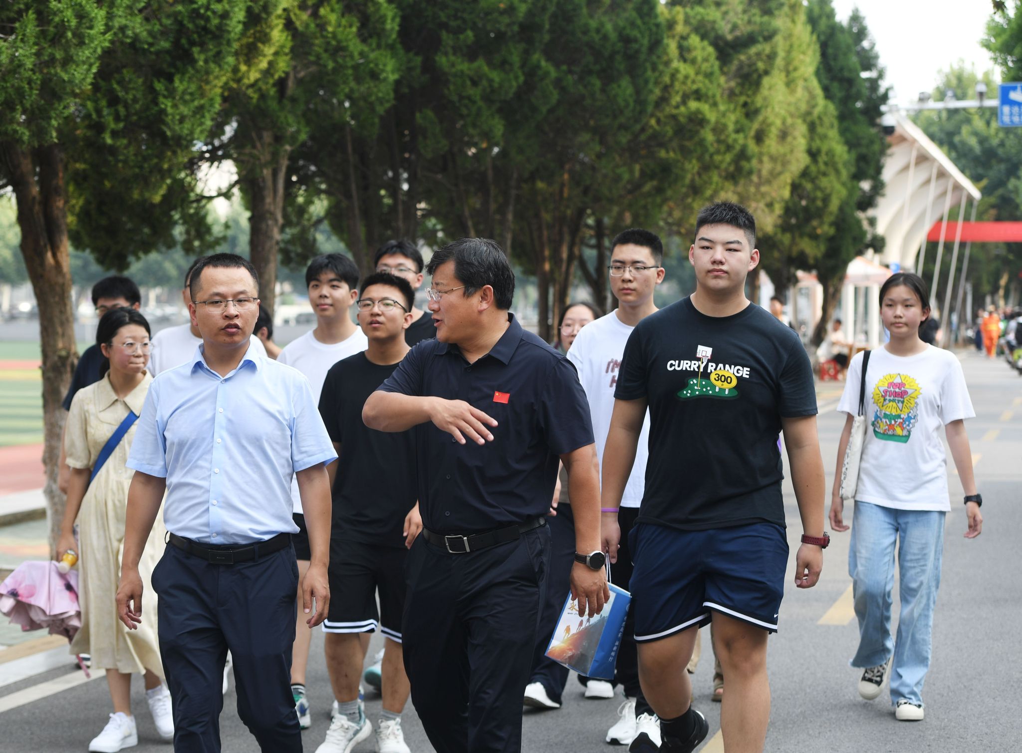 欧博生物地质与环境地质国家重点实验室研究员宋虎跃是晋城一中2003届的毕业生,也是张建国校长的第一届学生,他也来到报到现场和老师同学们一同参观校园。