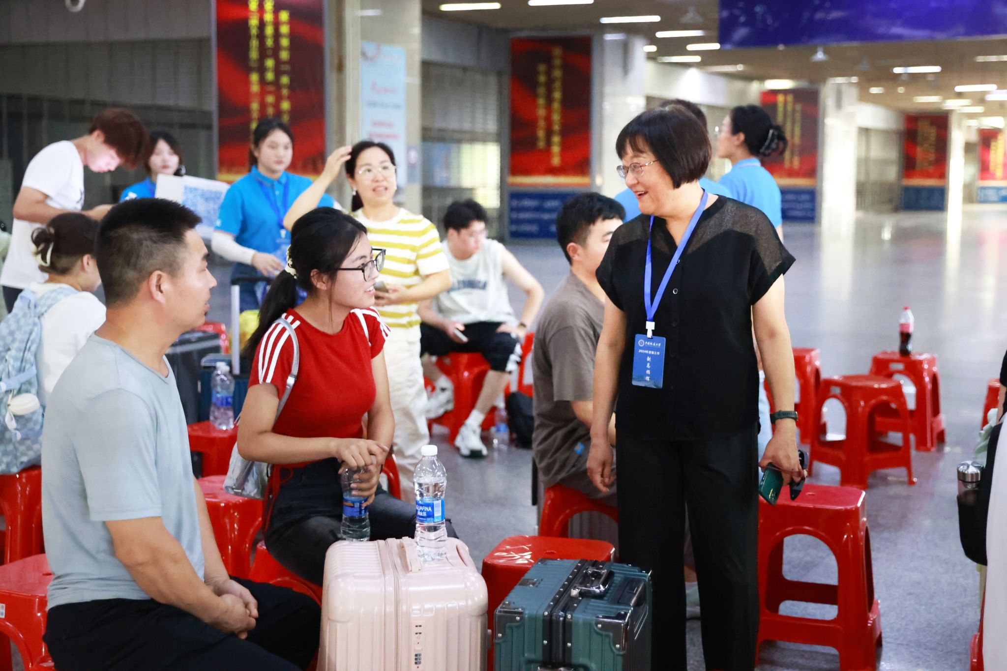为了迎接新生们的到来,9月2日至3日,约200名党员教师志愿者、新入职教师志愿者,与学生志愿者一同来到武汉三大火车站、天河机场,为新生们提供接站服务,有序引导、搬运行李、耐心解答,一切井然有序,一双双热情的手,温暖着新生及家长们。校党委副书记王甫,党委常委、组织部部长陈文武带队到迎新点慰问志愿者。
