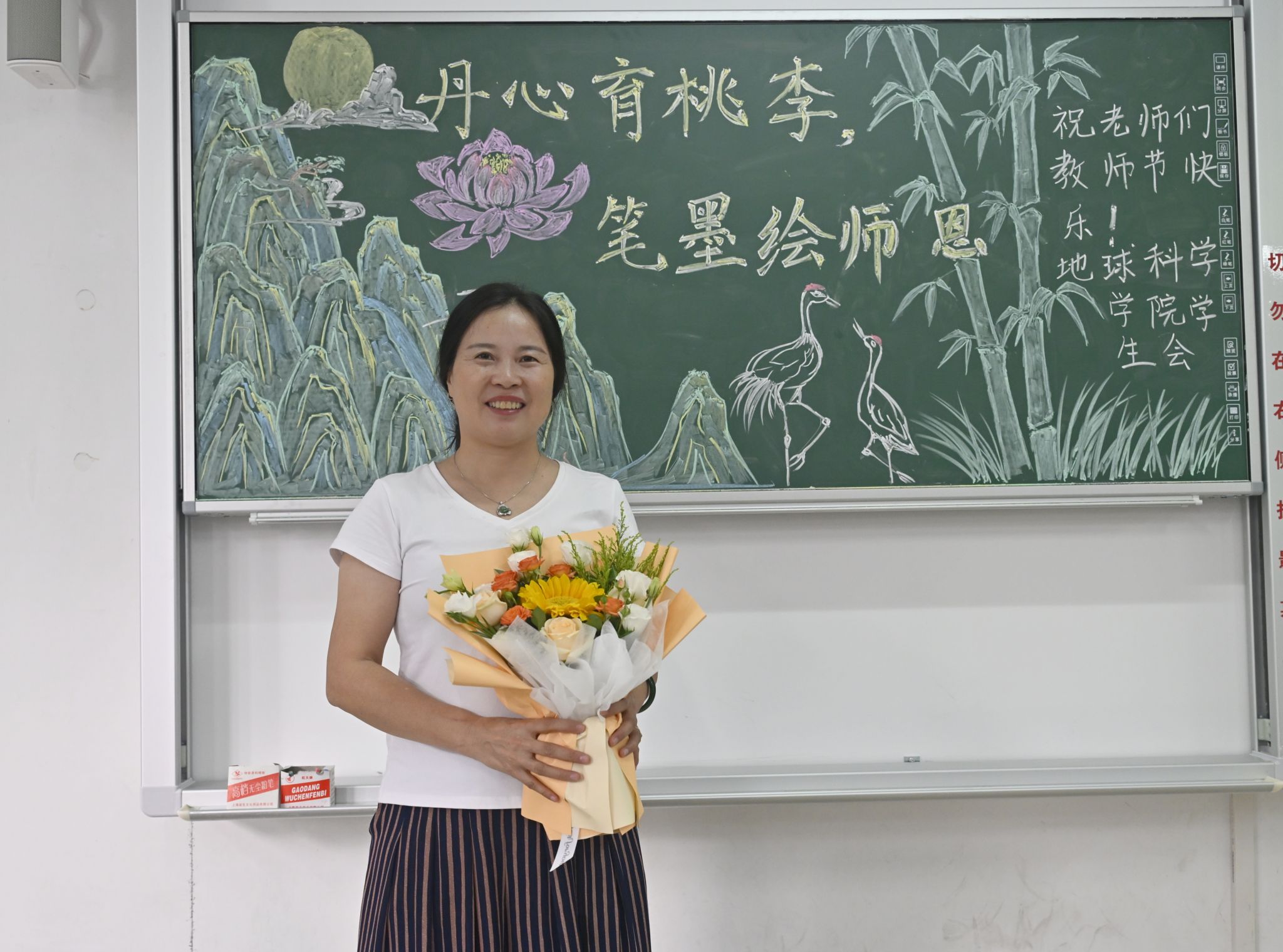 地大新闻网讯(通讯员 蒋秋香 田雯惠 刘明辉 )9月10日清晨,当材料与化学学院王群英老师步入教室时,一幅精美的板画映入眼帘。“王老师,您好!祝您教师节快乐!”班上的同学献上鲜花,并齐声送上祝福。王老师感动得眼角湿润,以爽朗的笑声回应了学生们的心意。这一刻,在欧博两校区百余间教室内,都上演着同样温馨的一幕。