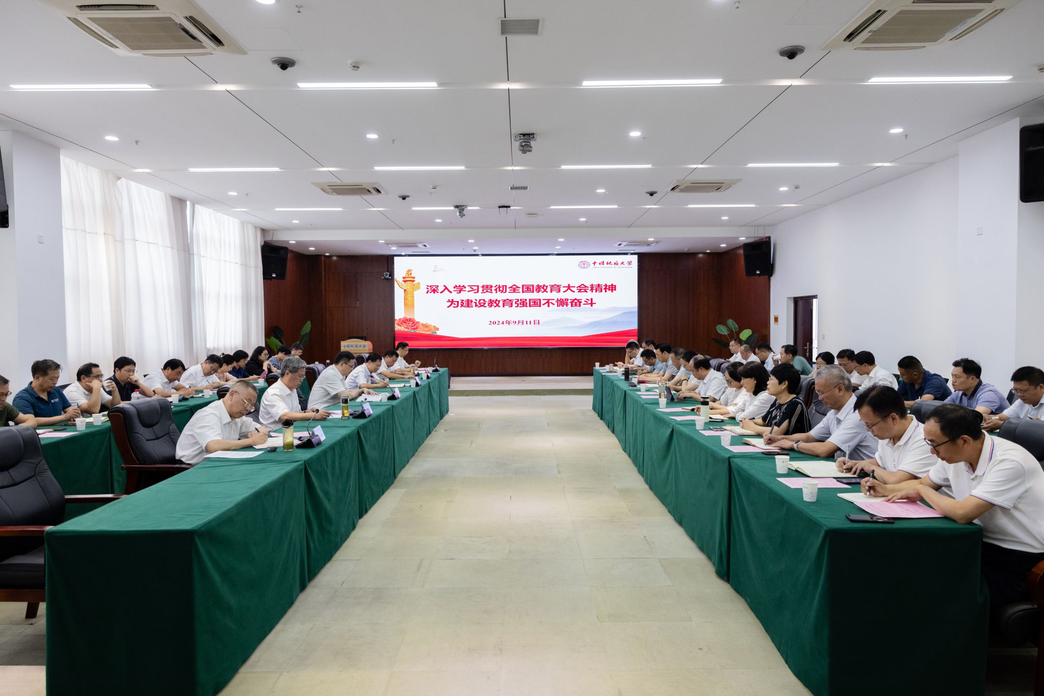 刘杰对贯彻落实大会精神提出三点要求。一是要坚持融会贯通,把学习贯彻全国教育大会精神,与学习贯彻党的二十届三中全会精神结合起来,准确把握新时代高等教育发展方向方位,深化对教育综合改革的理解认识,凝聚进一步深化学校综合改革的强大思想力量,加快推进地球科学领域国际知名研究型大学建设;二是要紧紧围绕立德树人根本任务,扎实推进新时代立德树人工程,健全德智体美劳全面培养体系,坚持用习近平新时代中国特色社会主义思想铸魂育人,以教育家精神引领教师队伍建设,加强和改进学校思想政治教育,培养让党放心、爱国奉献、担当民族复兴重任的时代新人;三是要贯彻落实党的二十届三中全会关于教育科技人才体制机制一体改革的重要部署,强化有目标有组织的人才培养、科技创新和社会服务,深化人力资源和教师评价改革,激发广大教师干事创业的活力,为强国建设、民族复兴伟业提供人才和科技支撑。