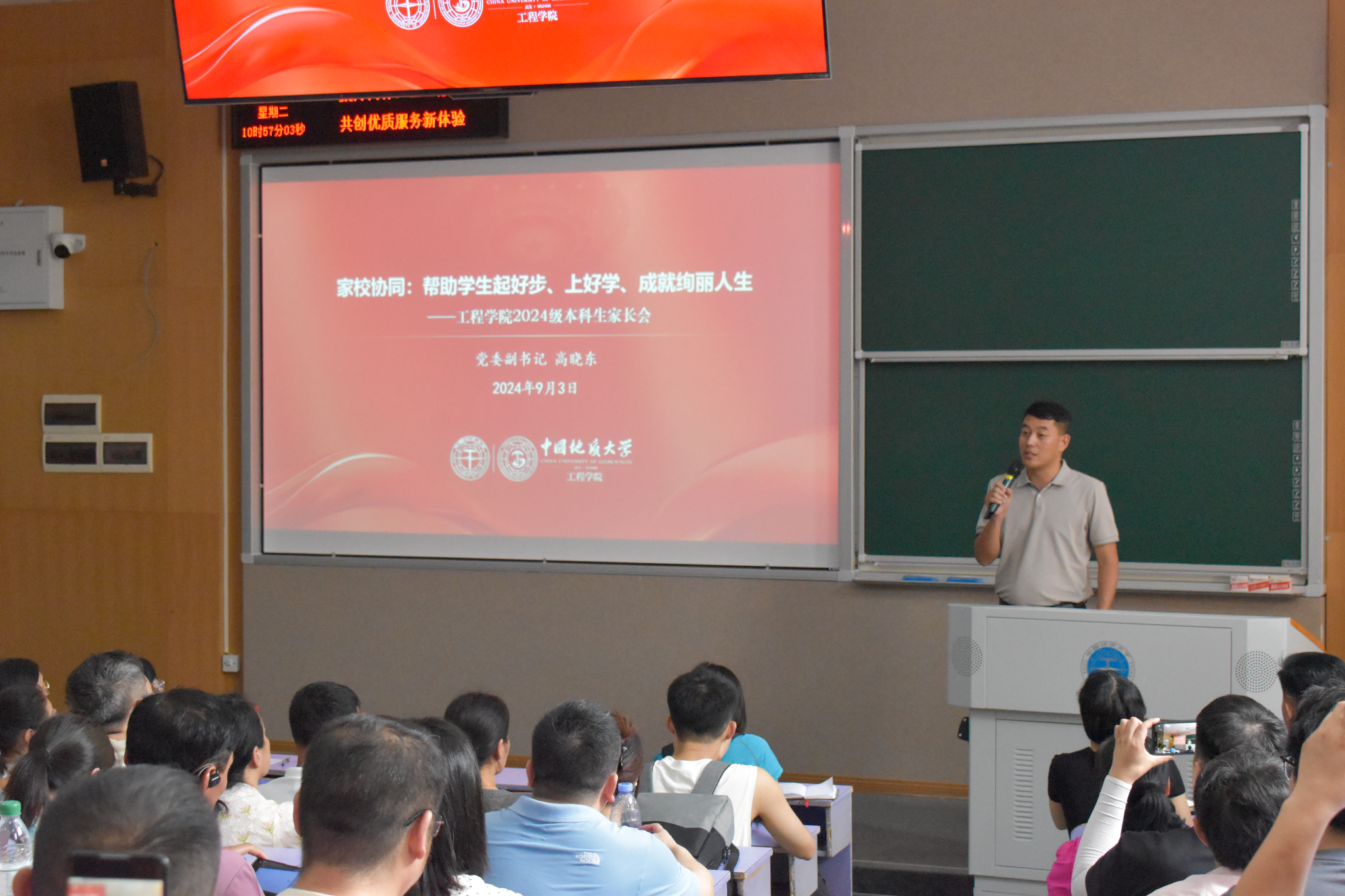 资源学院邀请校友代表、北京金阳普泰石油技术股份有限公司总经理袁钢辉走进学院开学典礼,分析产业变革新形势,勉励新生打好专业基础,运用好AI技术,为产业发展贡献青春力量;环境学院院长史建波教授围绕学院历史沿革、教学科研机构设置、野外实习基地、国际交流合作、专业设置、特色育人模式等多方面对学院进行了全面介绍,勉励同学以“红专能优”为标,树立地大梦和环境梦;工程学院邀请新生家长参加座谈会,搭建起学院与家长之间良好沟通的桥梁,呼吁家长与学院加强协同,形成合力,帮助学生起好步、上好学、成就绚丽人生。