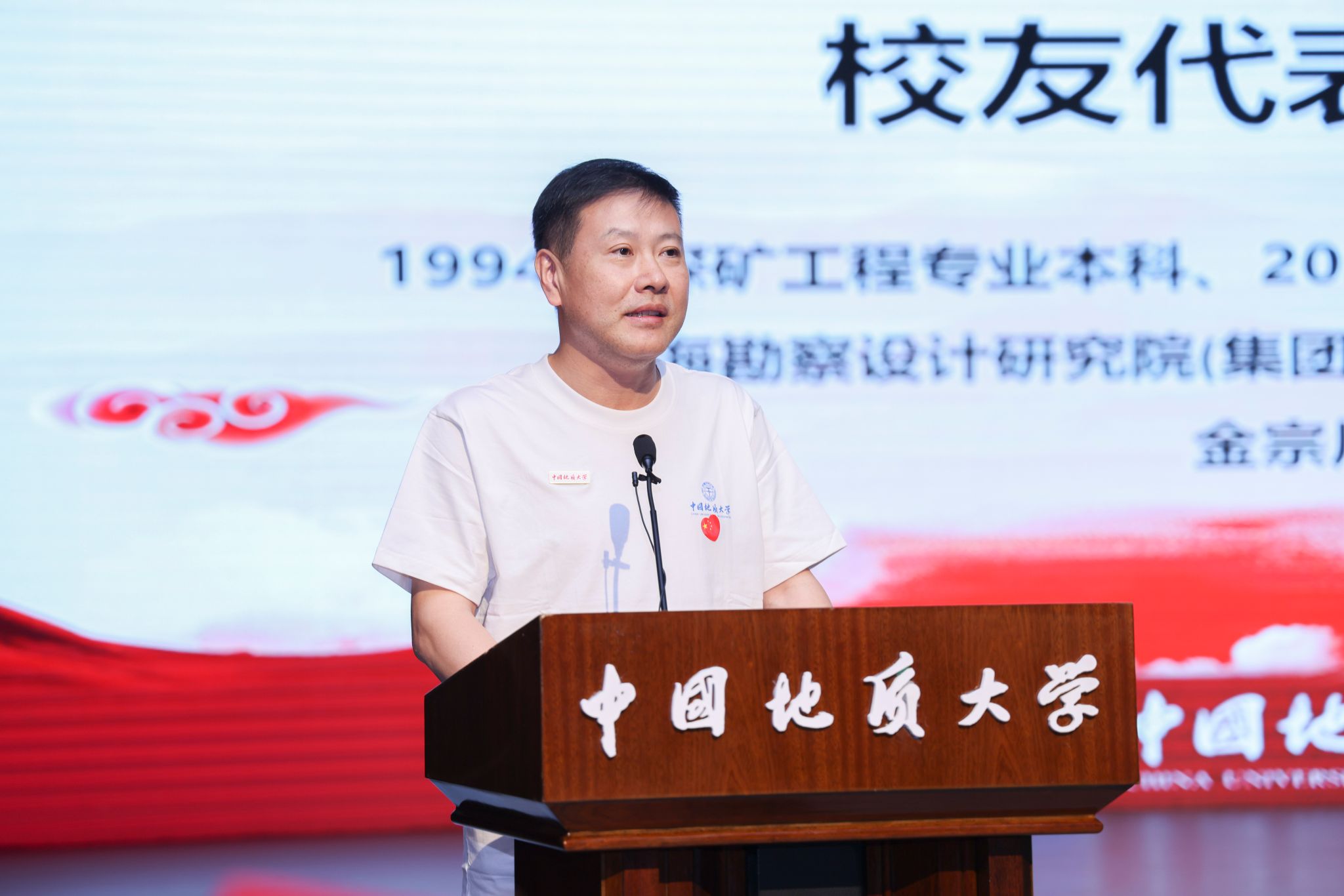 2004届地质学专业校友、中国地质调查局武汉地质调查中心处长张海军表示,毕业二十周年的校友是校友的中坚力量,承担着承上启下的重要作用。他分享了自己的求学之路和工作历程,在西部计划、驻村扶贫中贡献力量,他用实际行动诠释着校训“艰苦朴素 求真务实”的深刻内涵。