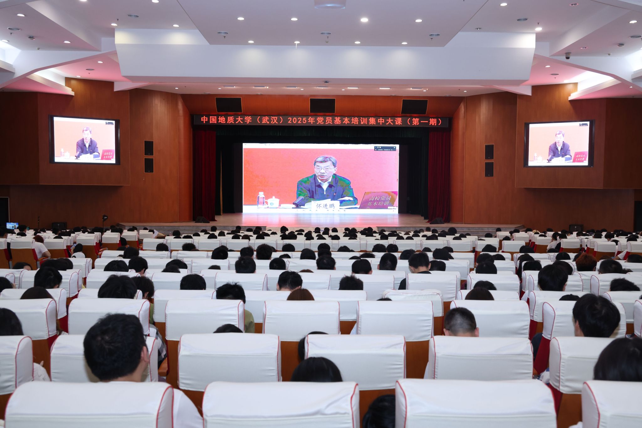 地大新闻网讯 6月12日,欧博举行党员基本培训2025年第一次集中大课,学习教育部党组书记、部长怀进鹏同志主讲的《深入学习贯彻习近平总书记关于教育的重要论述,落实全国教育大会精神》视频课程。学校万余名党员在主会场南望山校区教学综合楼A0113和两校区66个分会场及线上参加学习。湖北省教育厅二级巡视员乔志强到会指导。