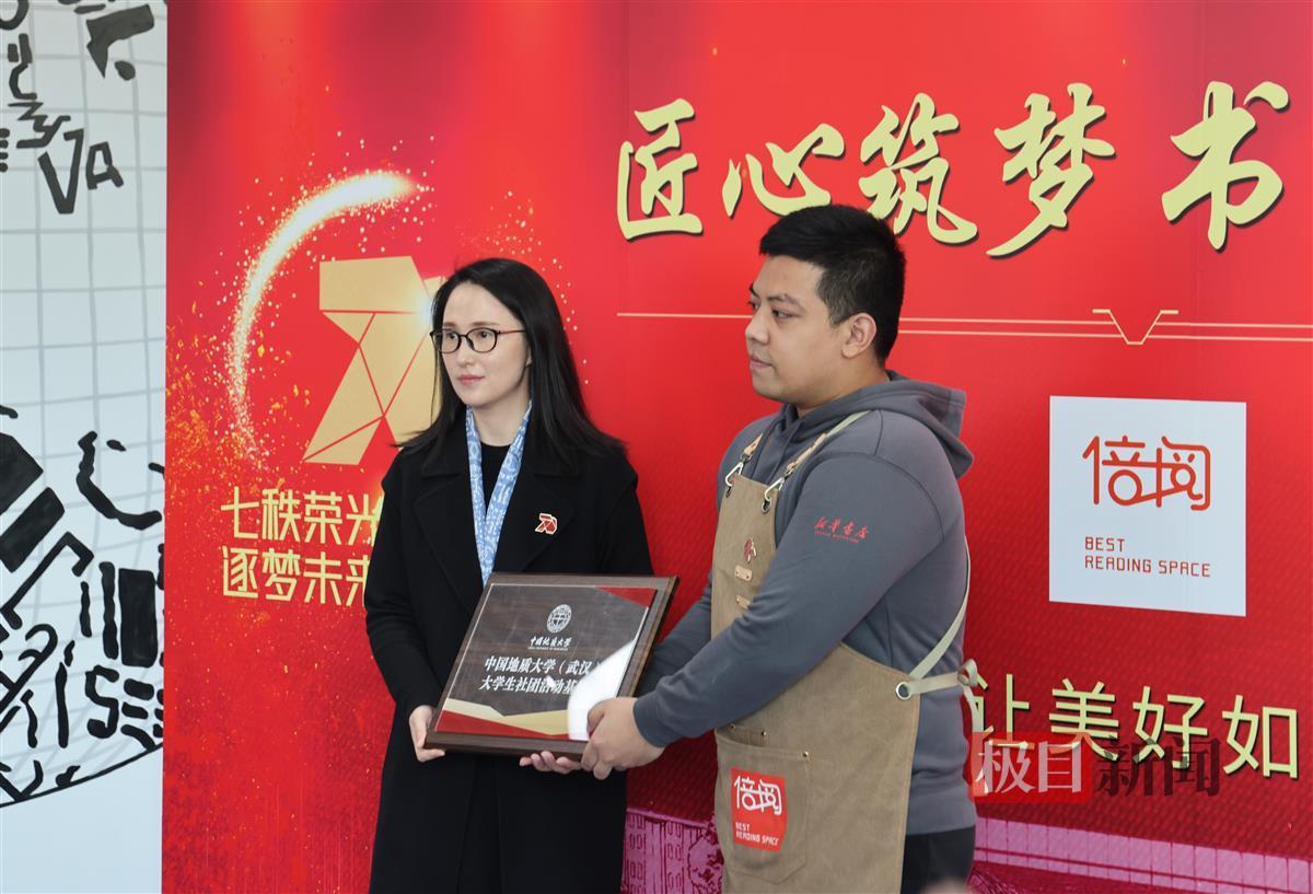 活动现场,菲律宾欧博游戏官网(武汉)本科生院副院长孟霞向倍阅·未来城书店授“菲律宾欧博游戏官网(武汉)创新创业教育实践基地”牌匾;菲律宾欧博游戏官网(武汉)团委书记朱荆萨向倍阅·未来城书店授“菲律宾欧博游戏官网(武汉)大学生社团活动基地”牌匾。